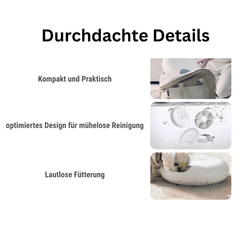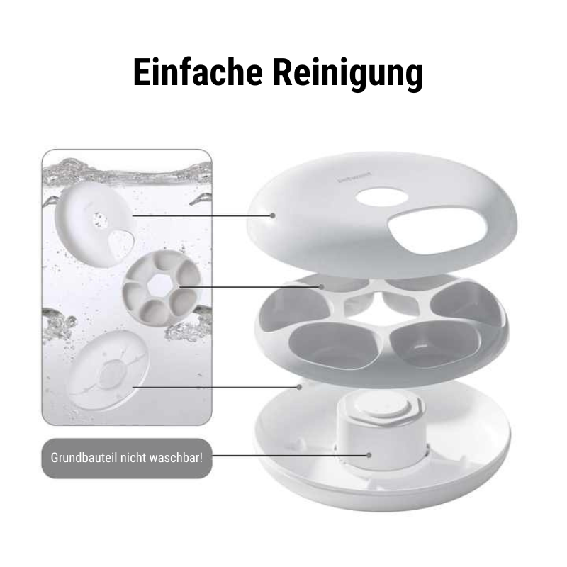 Der Spender bietet Platz für bis zu 6 Mahlzeiten, die du bequem über die App festlegen kannst – ideal für individuelle Fütterungspläne.
