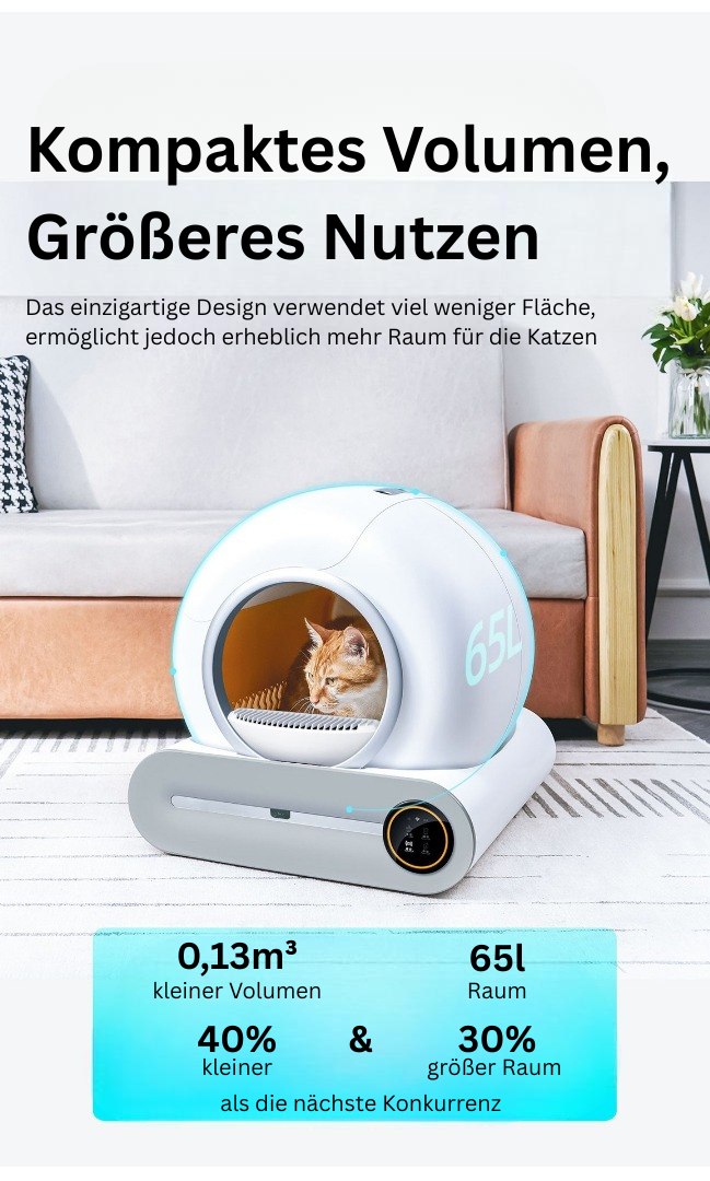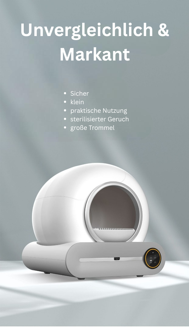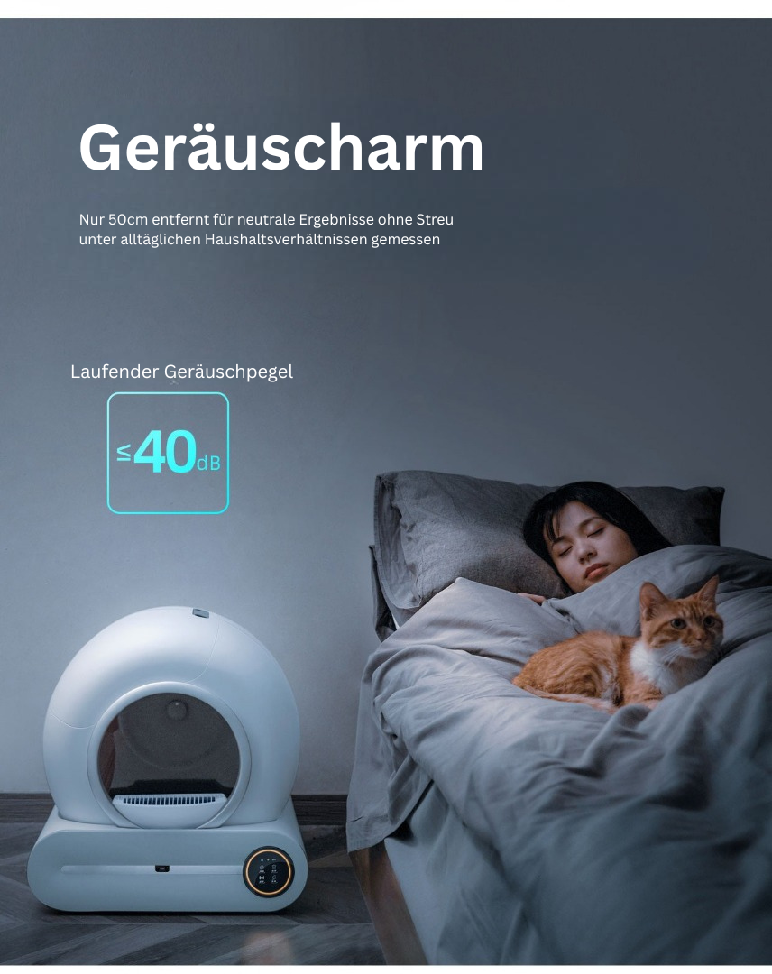 Die Katzentoilette arbeitet geräuscharm, damit deine Katze sich beim Reinigen nicht gestört fühlt und das Erlebnis vertrauensvoll bleibt.